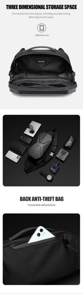 Protect Your Valuables with the OZUKO Hard Shell Chest Bag. This bag is not only stylish but also highly secure, giving you peace of mind while you’re out and about.